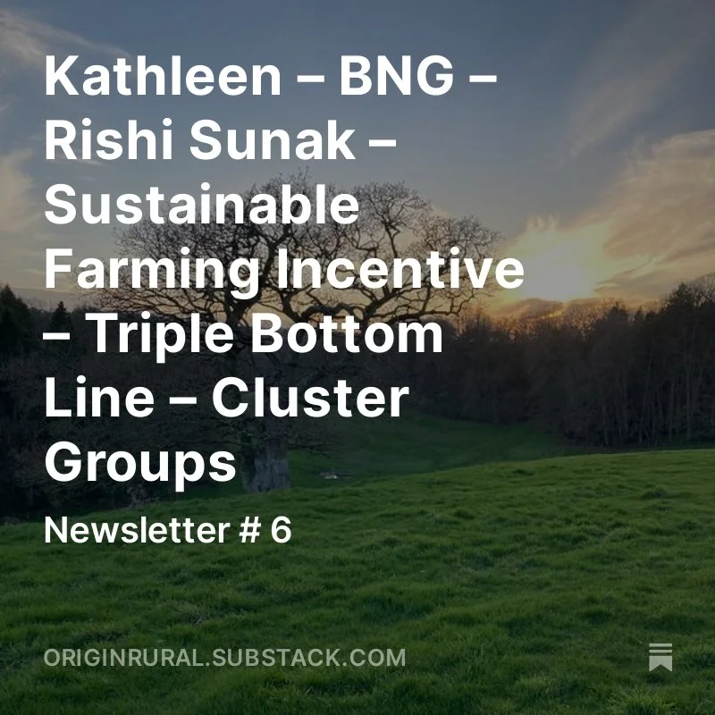 Kathleen – BNG – Rishi Sunak – Sustainable Farming Incentive – Triple Bottom Line – Cluster Groups Jun 22 Written By Chris Jones Newsletter #6 Chris Jones